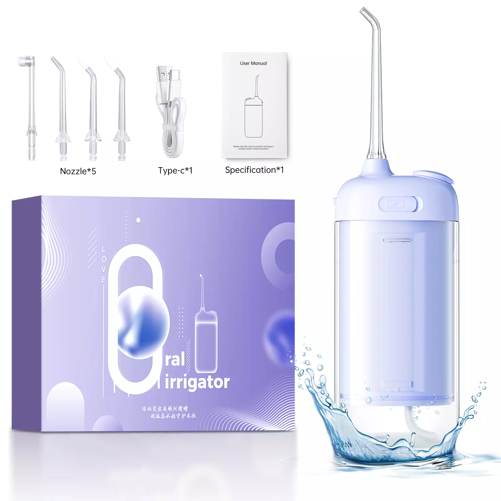 Irigator Lisan Portabel Mini untuk Perjalanan - Nosel 360° 4 Mode dengan Tas Travel